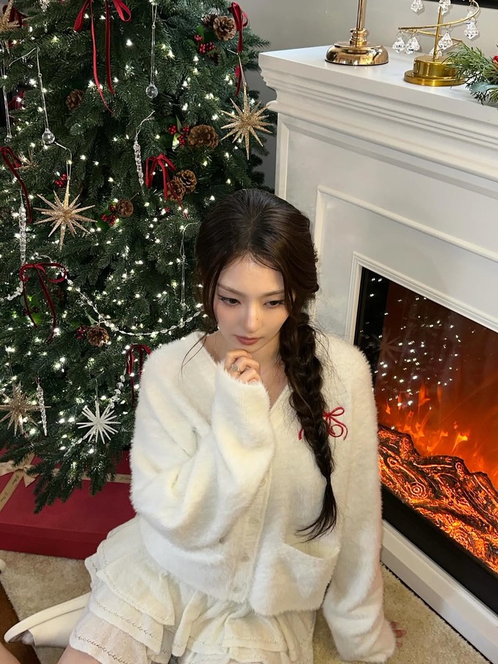 자연스럽게 땋아 내린 헤어스타일과 은은한 메이크업은 인형 같은 이목구비를 한층 더 또렷하게 살리며, 겨울 요정 같은 무드를 완성했다.