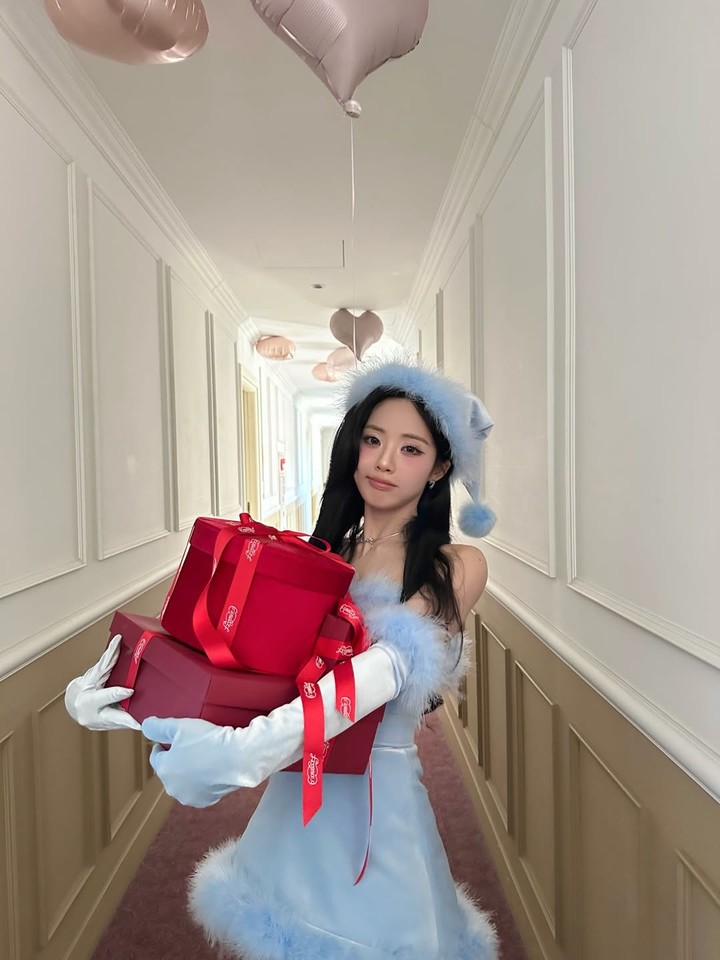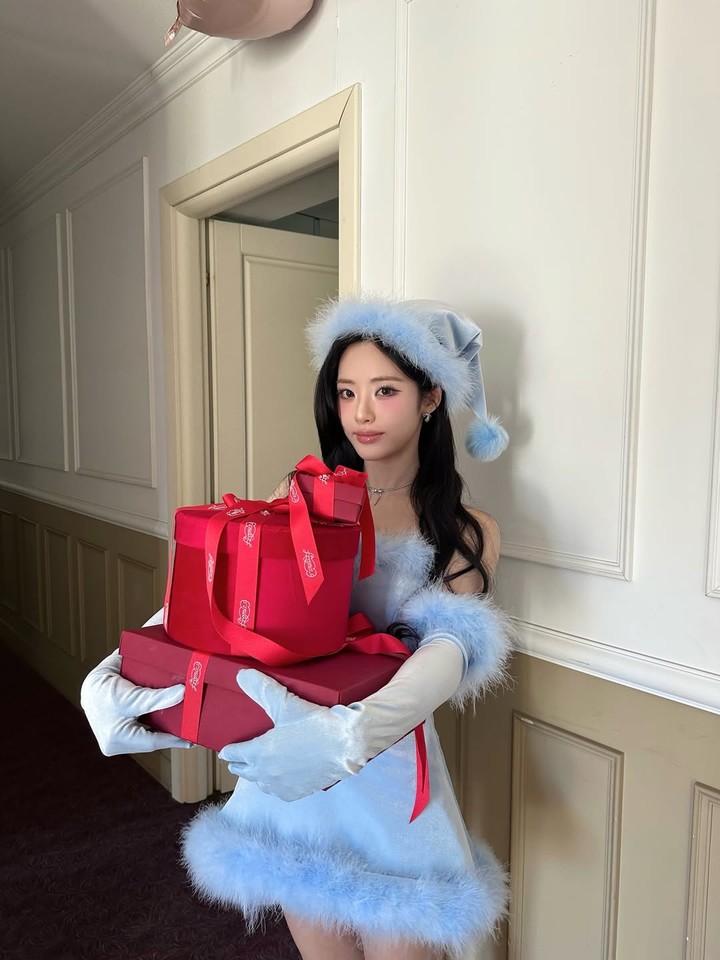 공개된 사진 속 박지원은 하늘색 퍼 장식이 더해진 산타 콘셉트 의상부터 반짝이는 레드 크리스마스 룩까지 다양한 스타일을 완벽히 소화하며 시선을 사로잡았다.